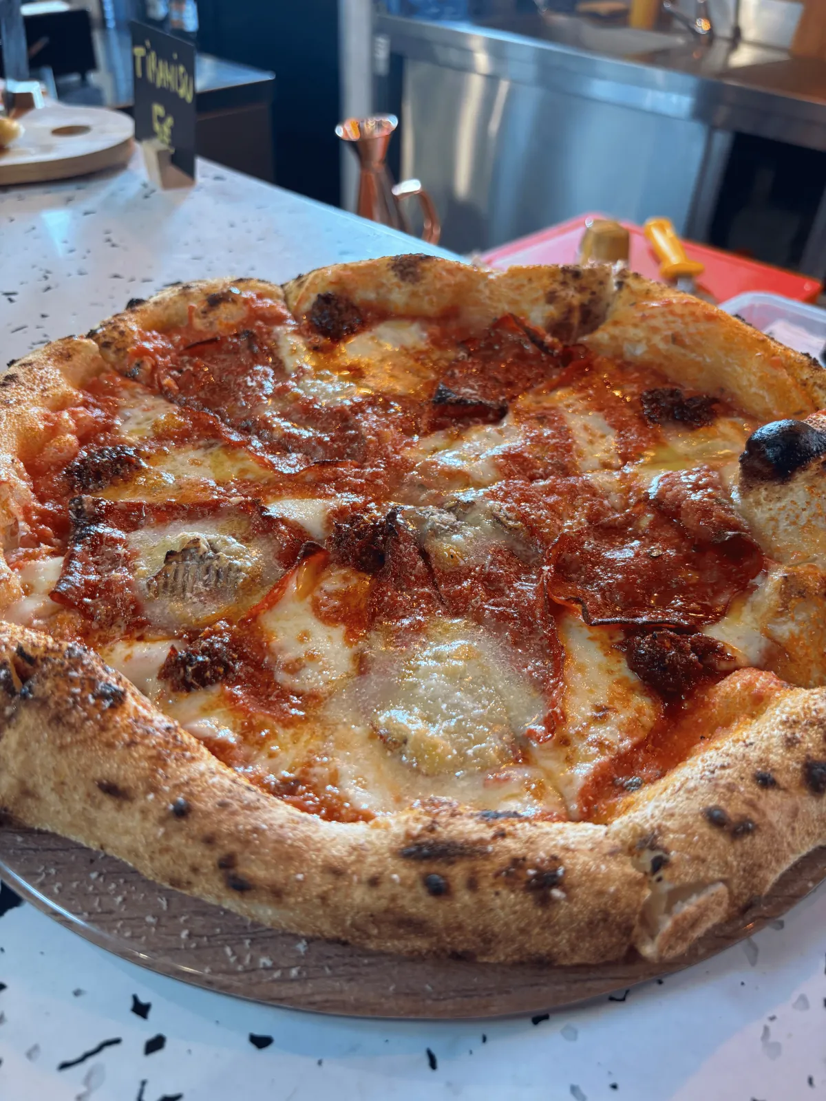 Grâce à une cuisson à très haute température🌡️, la pizza est saisie en quelques instants : la pâte devient légère et moelleuse, les bords gonflent naturellement, et les ingrédients gardent toute leur saveur grâce à une cuisson millimétrée.